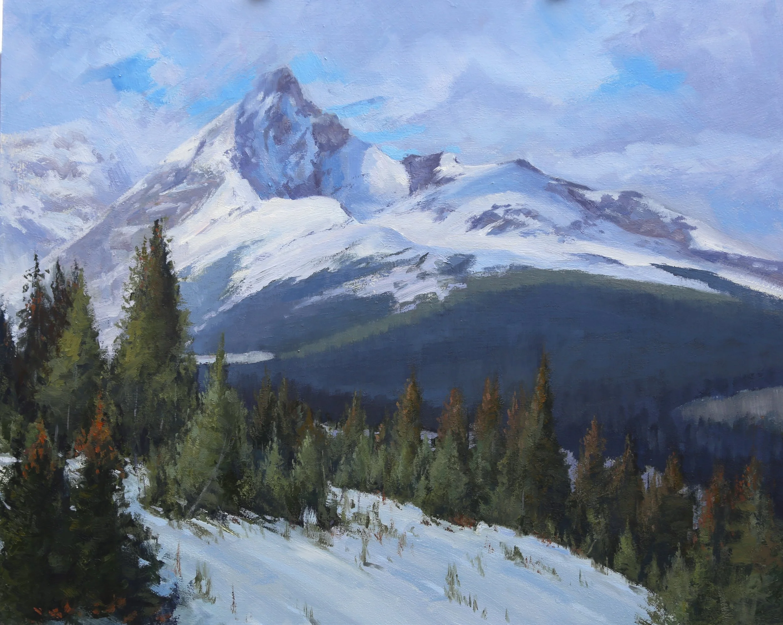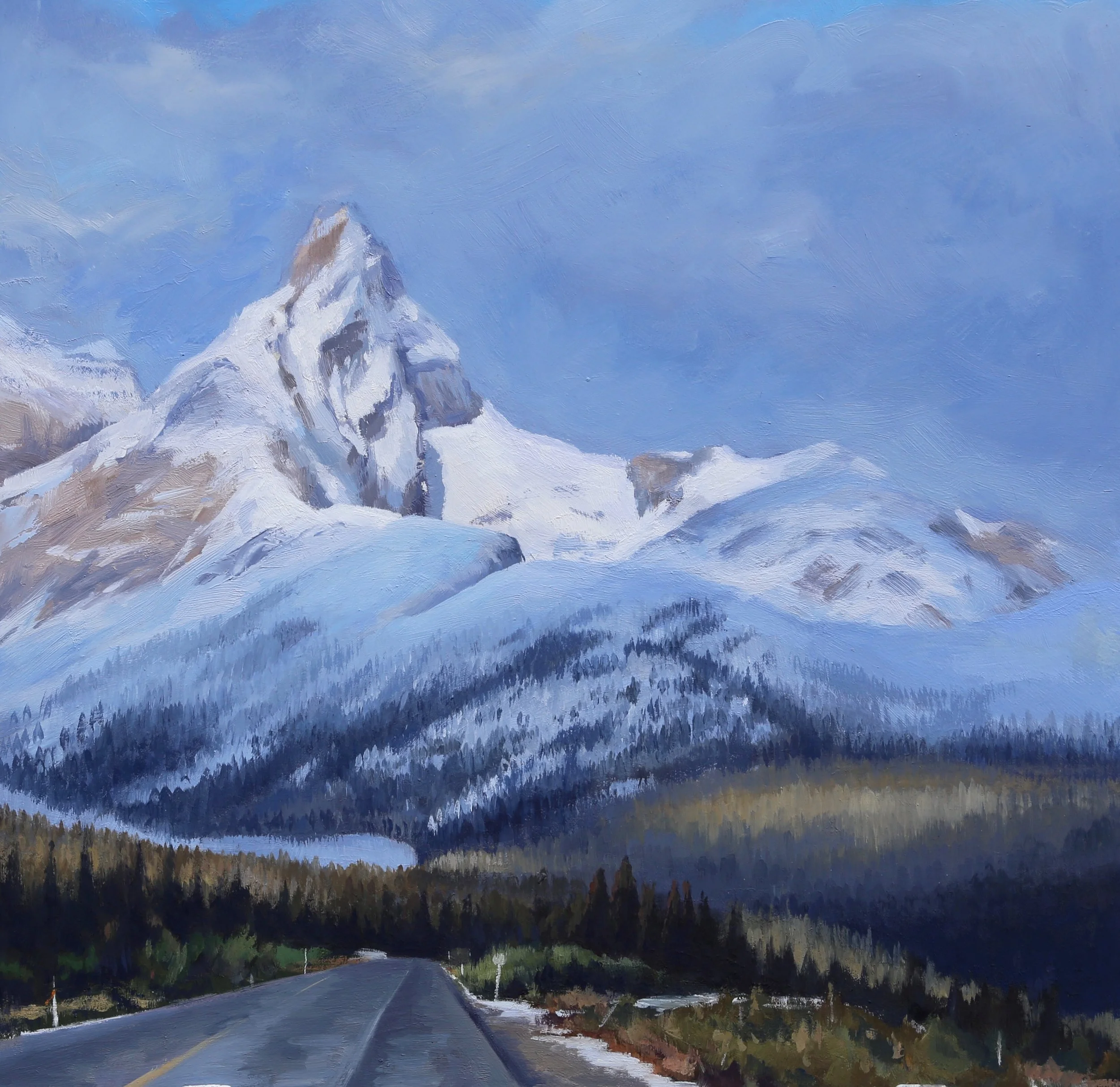 Last Light on Mt. Athabasca 7" x 14" Oil on Panel